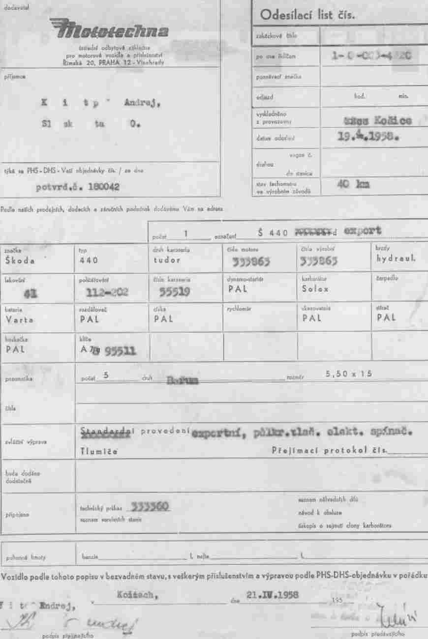 | 47 | všimni si: | originálna objednávková listina - uvedený presný popis auta - číslo lakovania, čalúnenia, že je to export, aké má vybavenie ... (suppper nie ?) |
